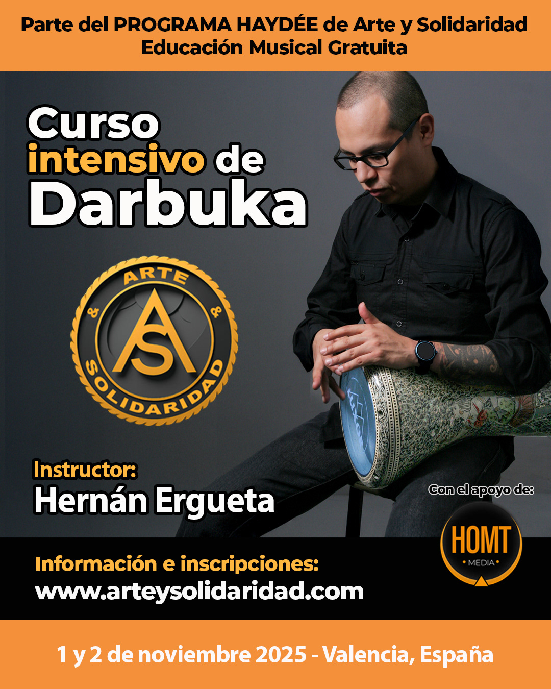 Hernán Ergueta, músico, educador y profesional creativo con más de 20 años de experiencia. Ha vivido en Egipto y se especializa en el estudio de ritmos antiguos y su influencia en la música árabe. Actualmente, dirige el proyecto Arte y Solidaridad en Valencia, donde promueve la enseñanza musical como herramienta de integración y crecimiento.